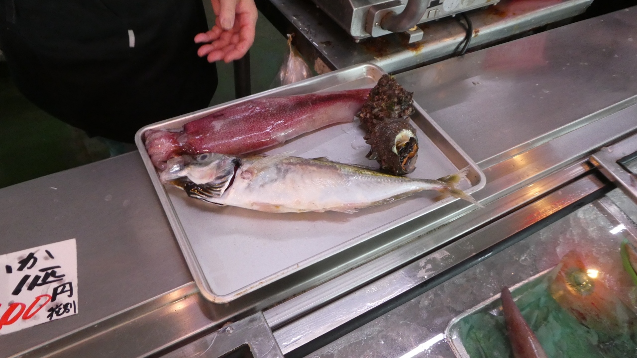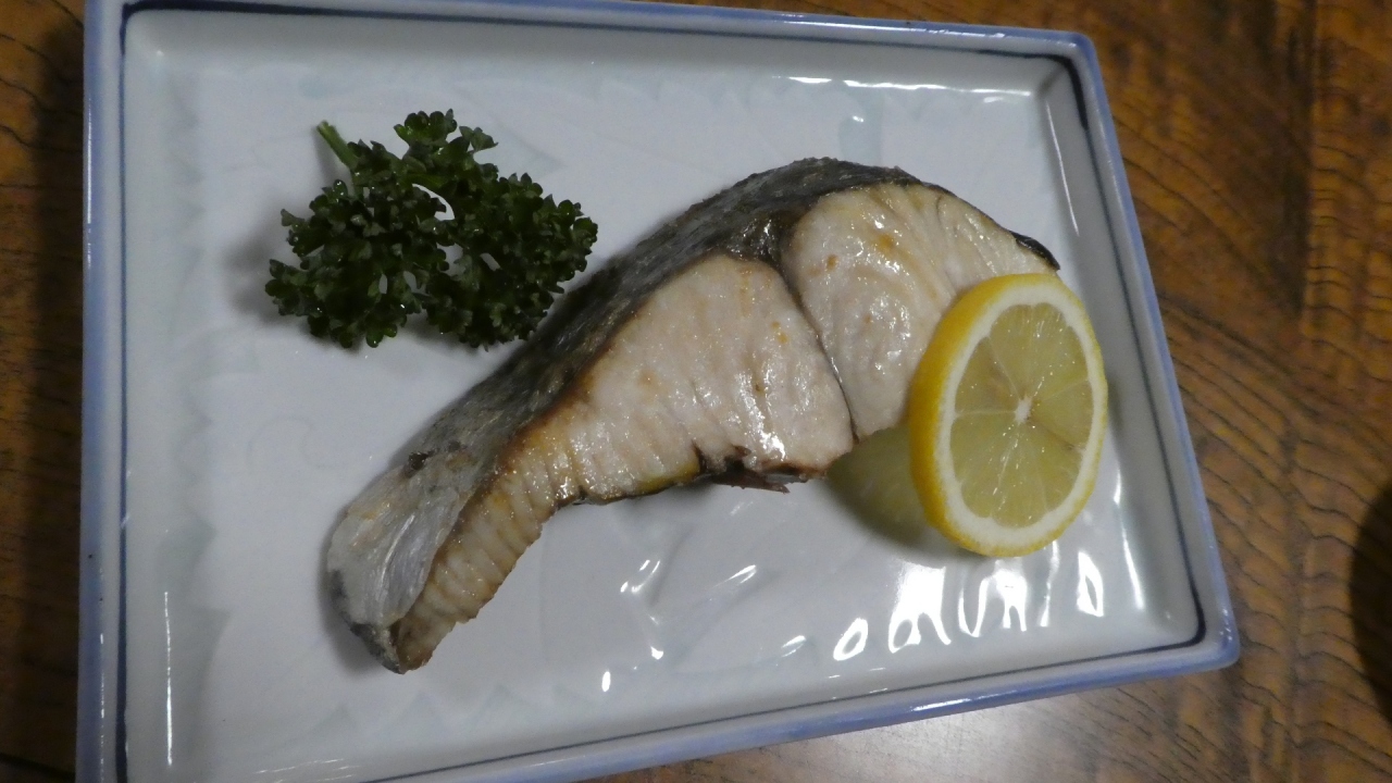 鯛を二口で 食べようとして 噛み切れずに苦労する、 4口ぐらいで 食べようとすればよかった。