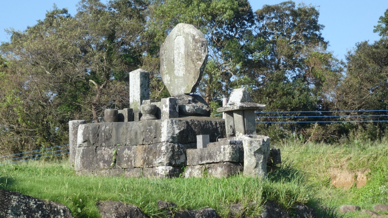 その奥に 十数段の石段、この石段が 騙される石段で、突き当りに左上の矢印と 小山の上まで続く石段があります。