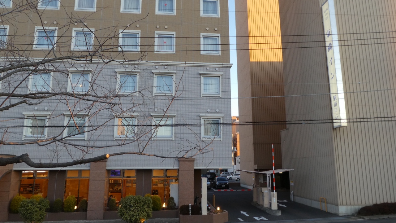 どうせなら 一番安いビジネスホテルにと 選んだところ 手前にラブホテルもあり 遅い時間に女性一人ではちょっと怖いかもしr手ませんが オッサンさん二人連れ 寝るだけですからと。