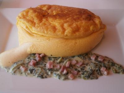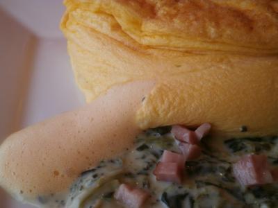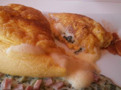 泡立てた卵で作ったオムレツはふわふわで、卵三個なのに大きな皿一杯でした。