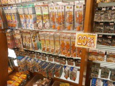 案内所には東条湖の魅力と見どころが書いてあります。お土産物屋ではこのあたりの特産物だけでなく、特産品の釣り針も20パーセントオフで並んでいました。