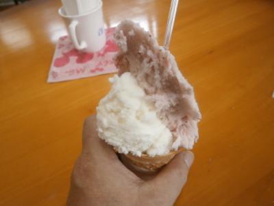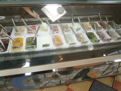自家製のアイスクリームが多数並んで、カップが300円 コーンで350円 ダブルの多きのコーンに弐種檻が400円でした。