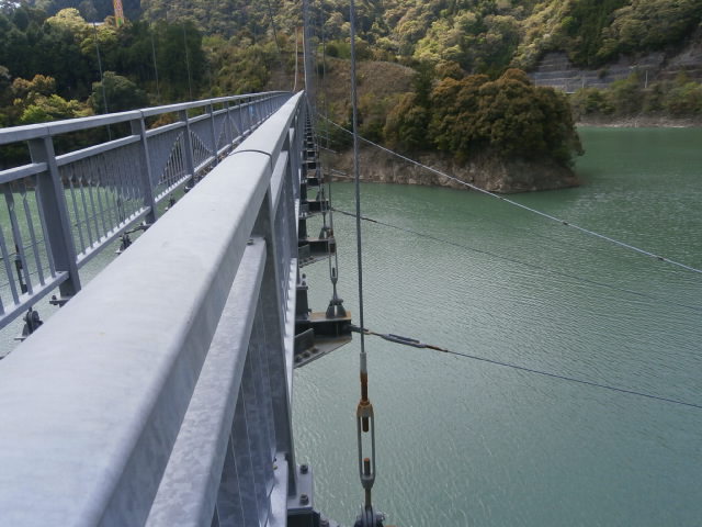 スチールのつり橋ですが 上下はあまり揺れないのですが予想しない横揺れに少し歩きにくい橋でした。