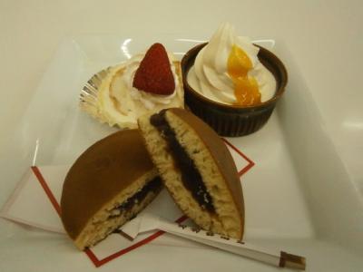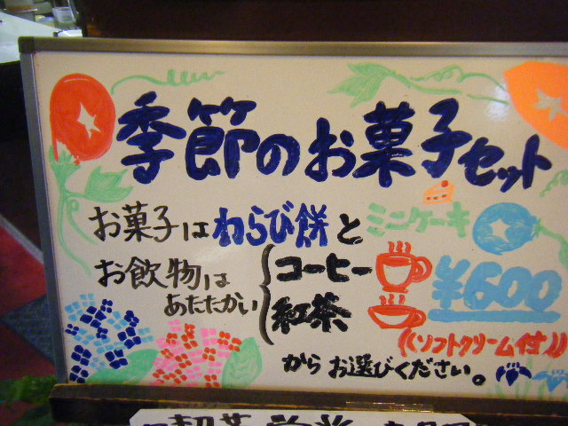 お菓子二品とソフトクリーム、それにコーヒーか紅茶で600円です。