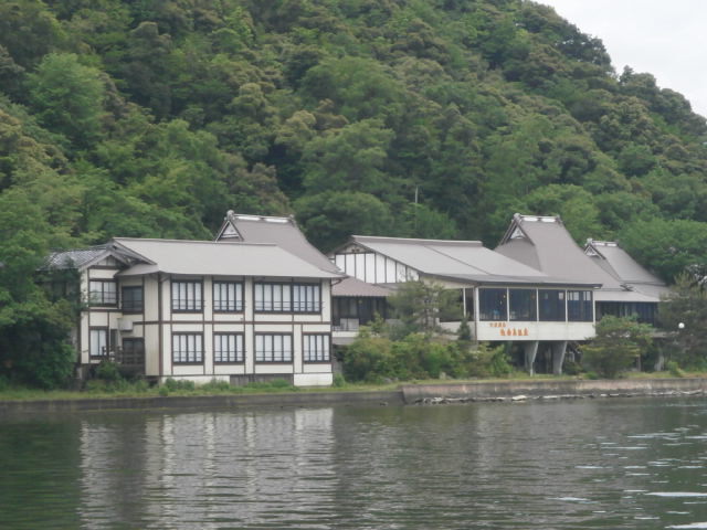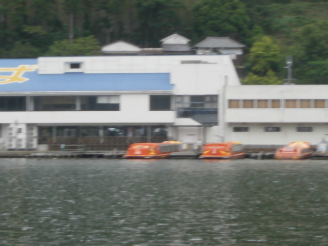 二軒の食堂兼土産物屋と、木彫りの作品を売るお店があります。