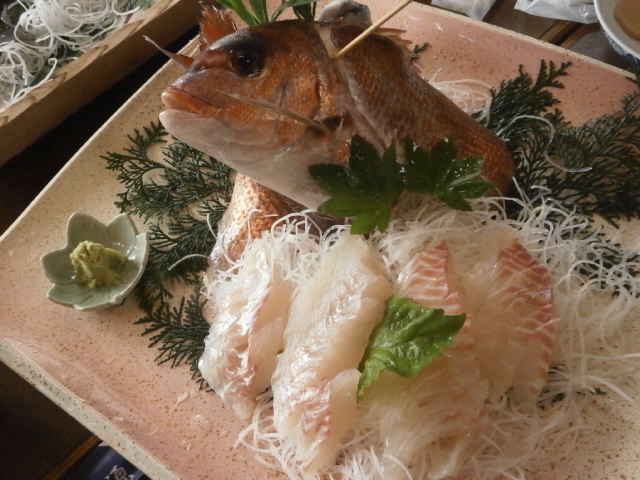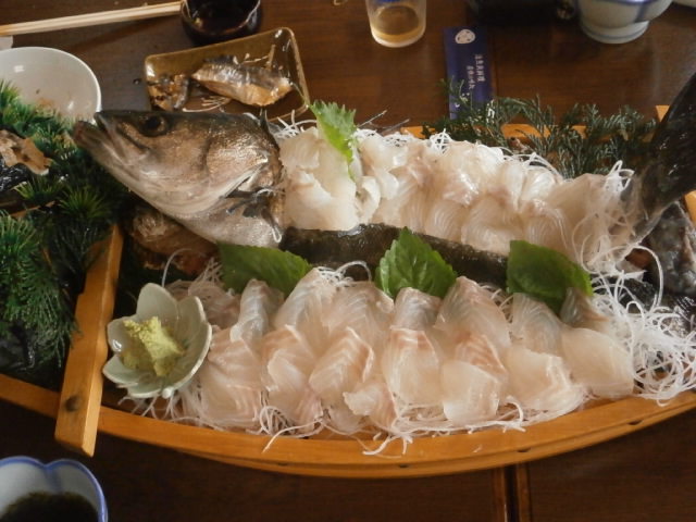 この日は、コウイカ、マイカ3杯、鯛、スズキ、ヒラメと 順にまだ動いているのが出てきました、食べきれないほどの料理に大満足でした。- 旅行時期
