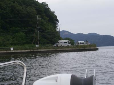 川沿いにある休憩所では バイクのライダーもくつろいでいました。