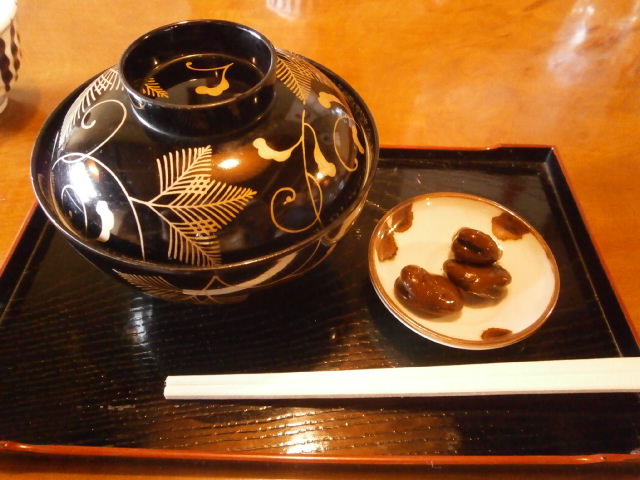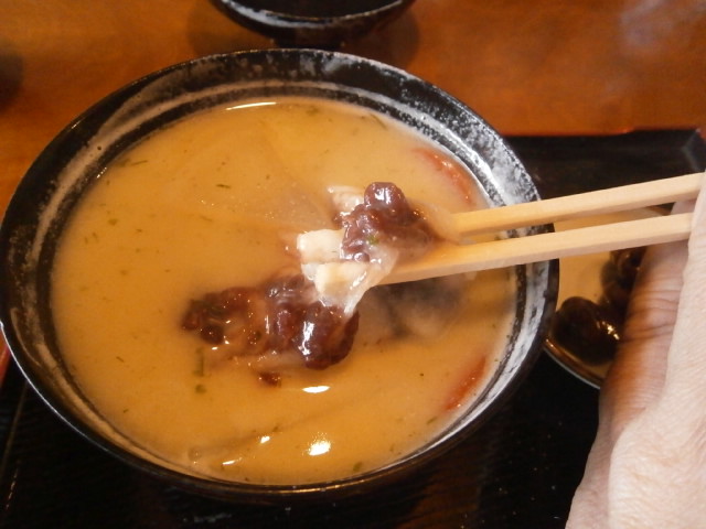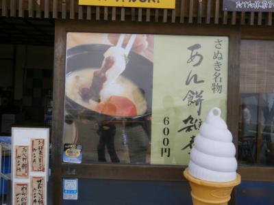 少し塩気の強い白味噌の味にあん餅が美味くマッチしていました、横についていた醤油豆も香川の名産品でした。- 旅行時期