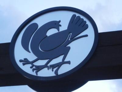 広い敷地に ヤタガラスのモニュメントがあるのが特徴です。