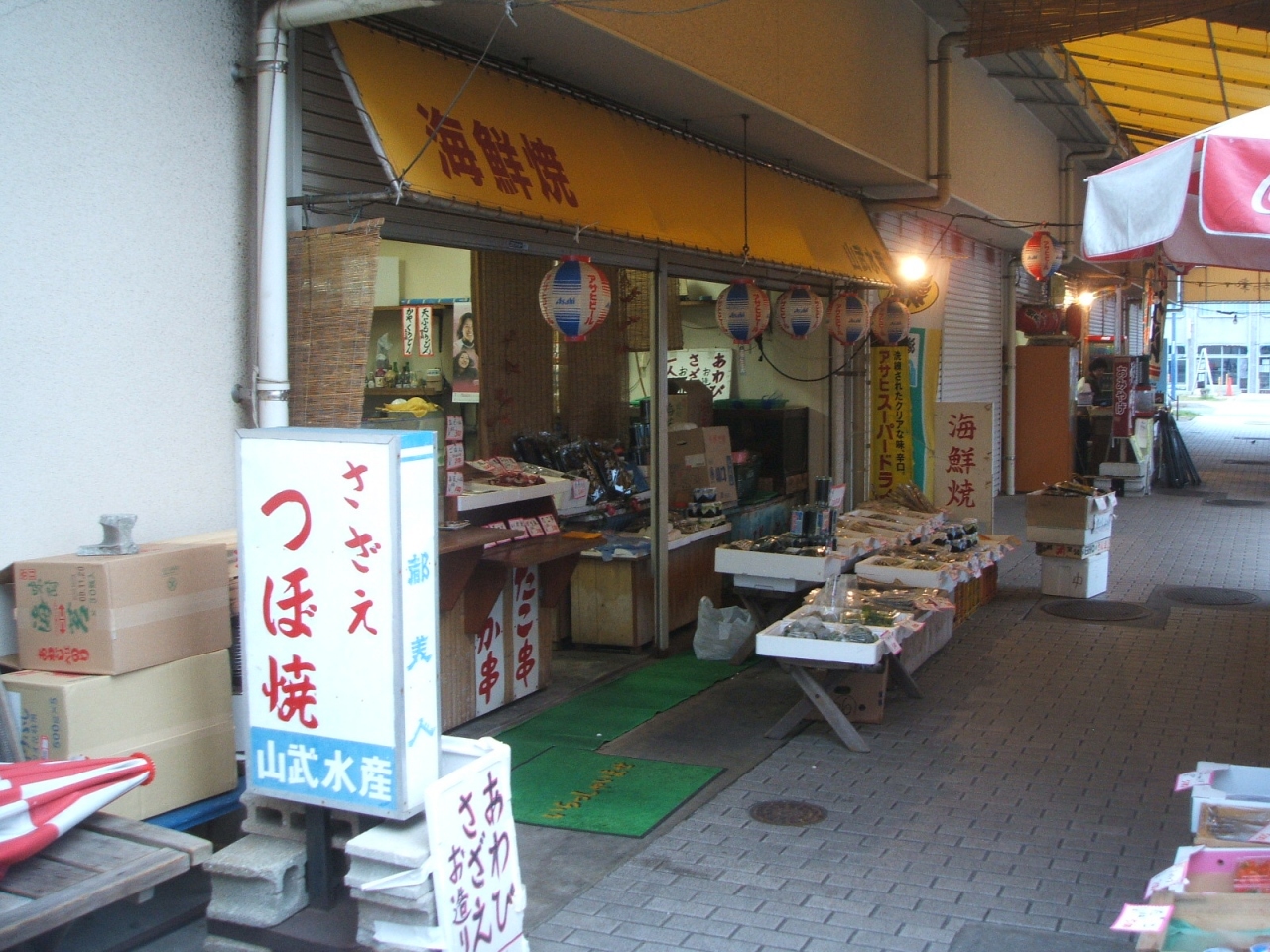 ここの港では 遊覧船以外に お土産売り場だけでなく横では海鮮を焼いて食べられるところもあります