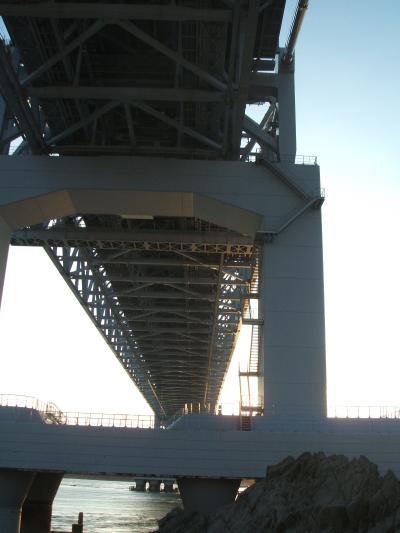 上を関門海峡大橋があり展望台からは関門海峡を行き来する船が見ることが出来ます。