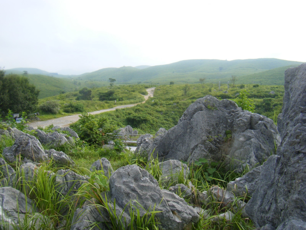 広がる眼下の山並みは草原で その中にカルスト台地ならではの突き出した岩があちこちに見られます。自然の大きさを感じたれる場所の見学できる展望台です。- 旅行時期