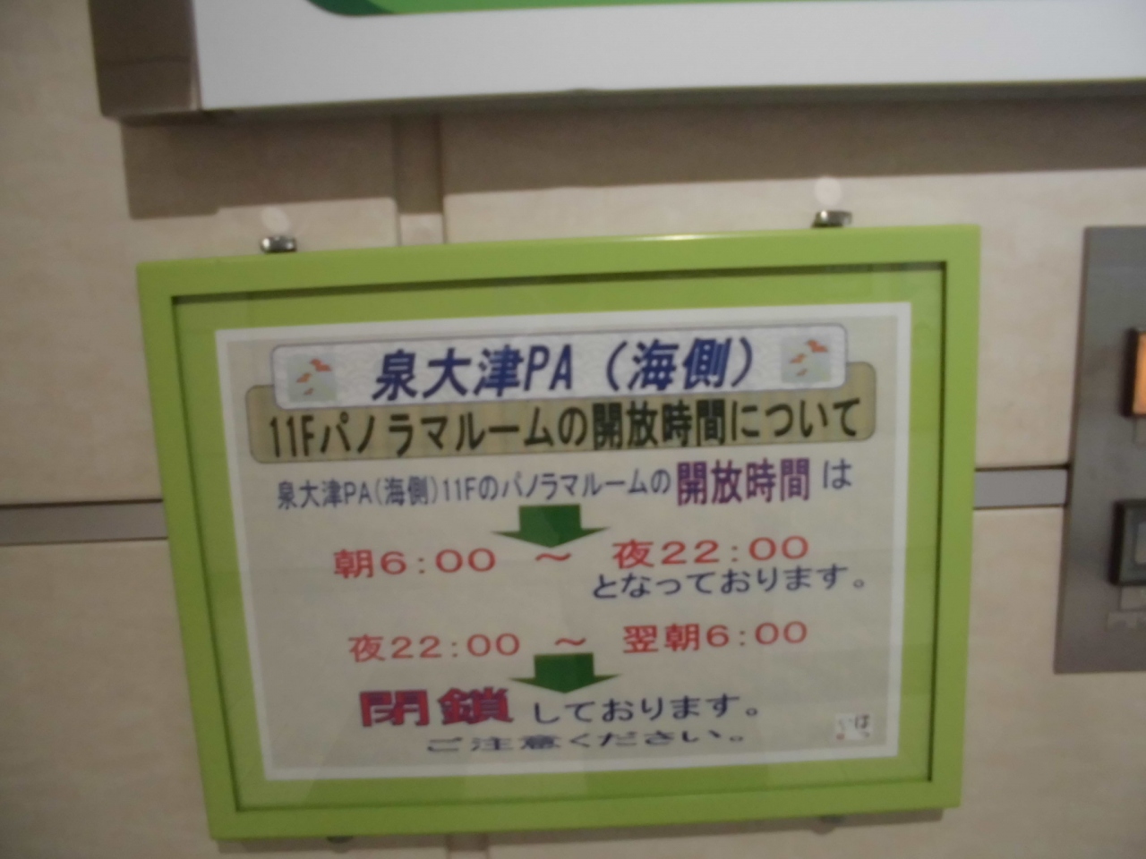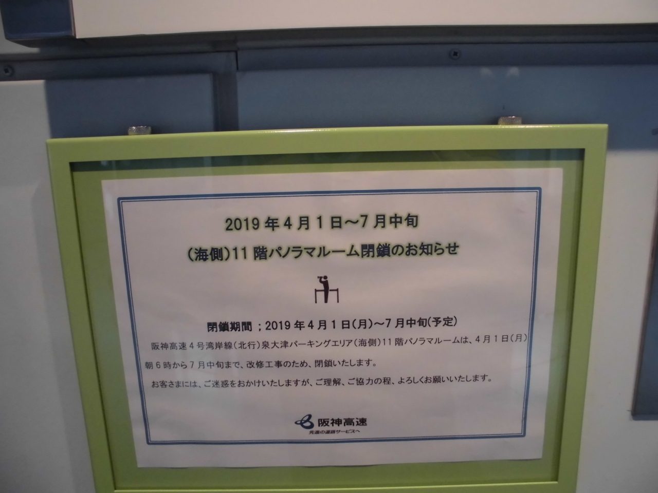 阪神高速道路湾岸線の泉大津パーキングエリアの無料休憩所の展望室です。