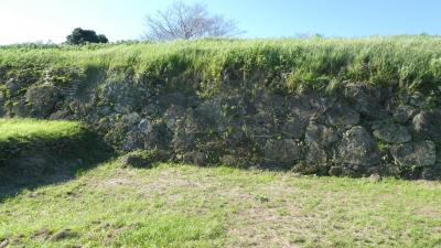 その奥に 十数段の石段、この石段が 騙される石段で、突き当りに左上の矢印と 小山の上まで続く石段があります。