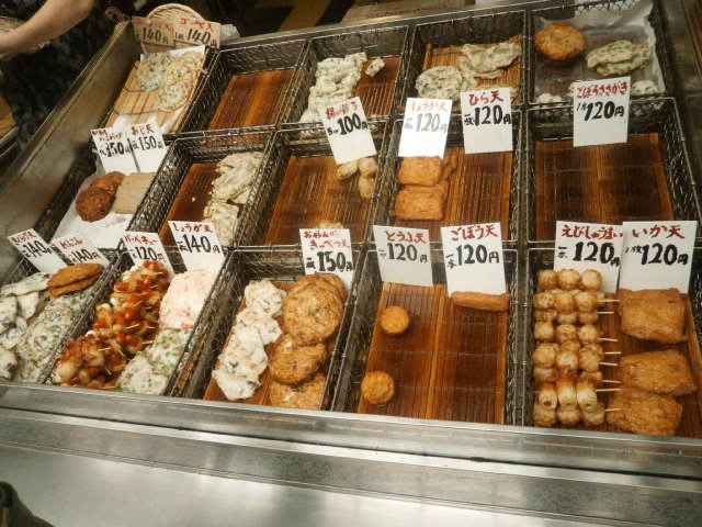 オリジナルも多く、特にここの豆天は絶品で、音りてんに入った豆の多さが売り物です。海老としいたけや ゴーヤ天も人気の商品、オリジナルの練り天も応相談で作ってくれます、ただ松茸の天ぷらは、過去にやったことあるけれどもったいないだけやでと。