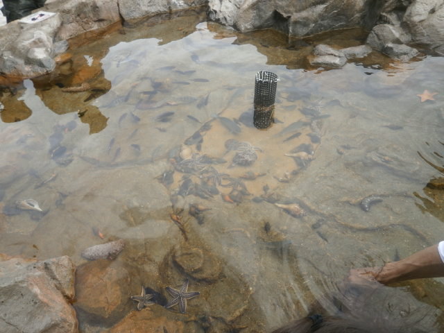 中庭にはプールがありごまふあざらしが泳いでおり、その横には海の生き物と触れ合うところで子供たちがおそるおそるヒトデやナマコを持ち上げてました。- 旅行時期