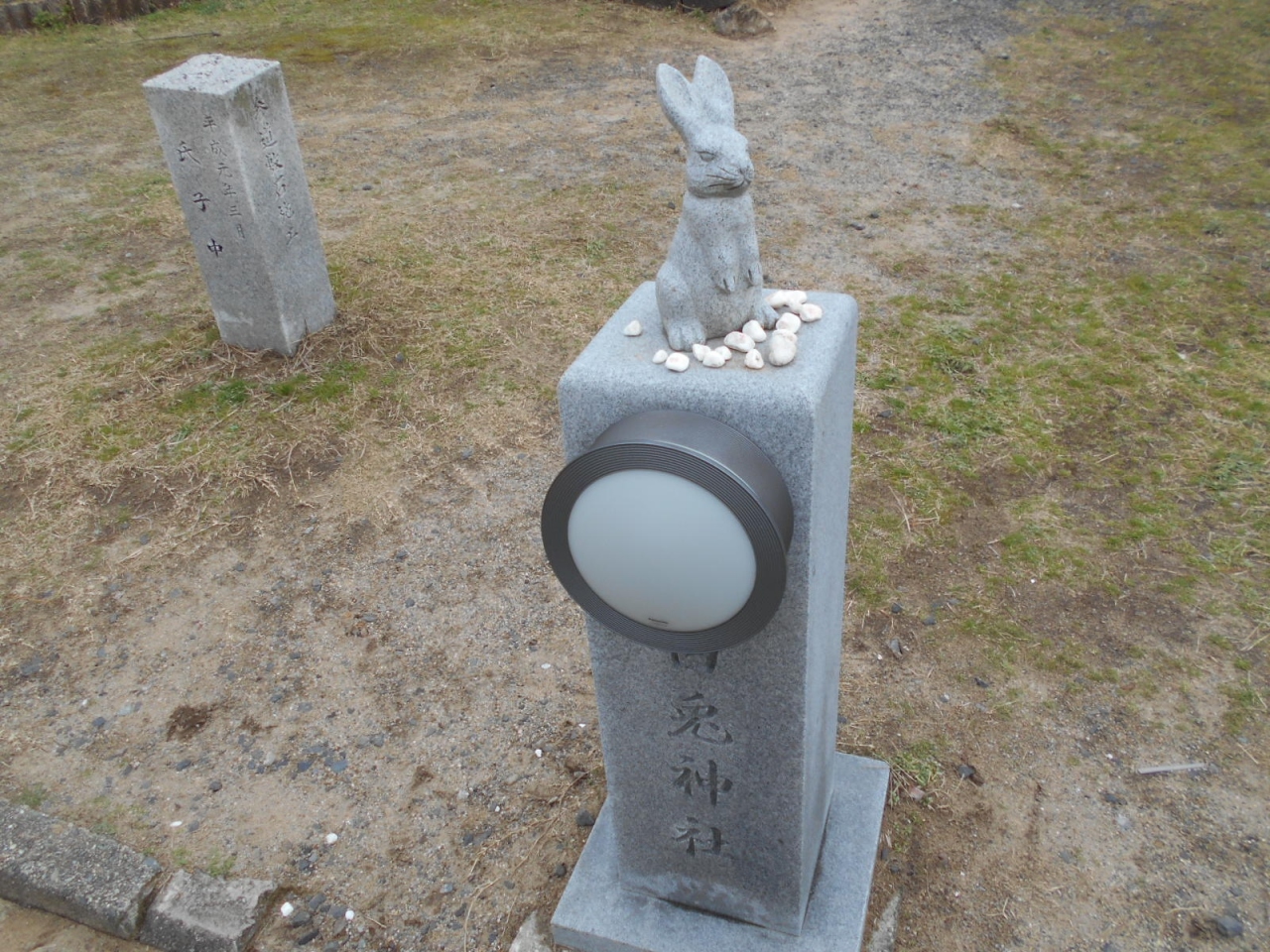 神話の 因幡の白うさぎの話に出てくる、サメに皮をはがれて泣いていたウサギに 蒲の穂にくるまれてと 大国主命が教えたウサギを祀る神社です。