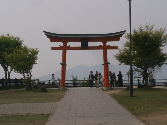 海側には赤い鳥居が立っており、宮島が見えるようになっています。