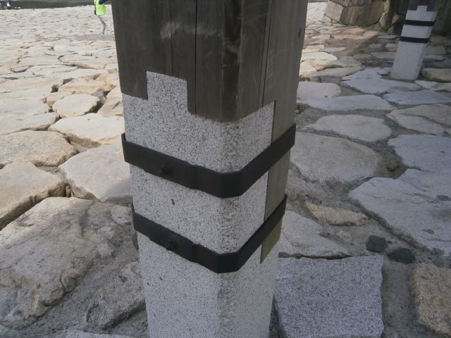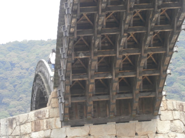 上から見ると浅い綺麗な川が見えます、と言う子とは裏腹に増水した時には橋にかかる力が多いでしょうが、さまざまな所に建築的な工夫の跡がうかがえました。