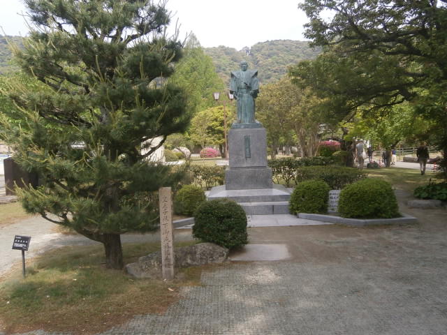 錦帯橋を渡って城下町に入ると真っ先に目に飛び込んでくるのがこの巨大な銅像です。