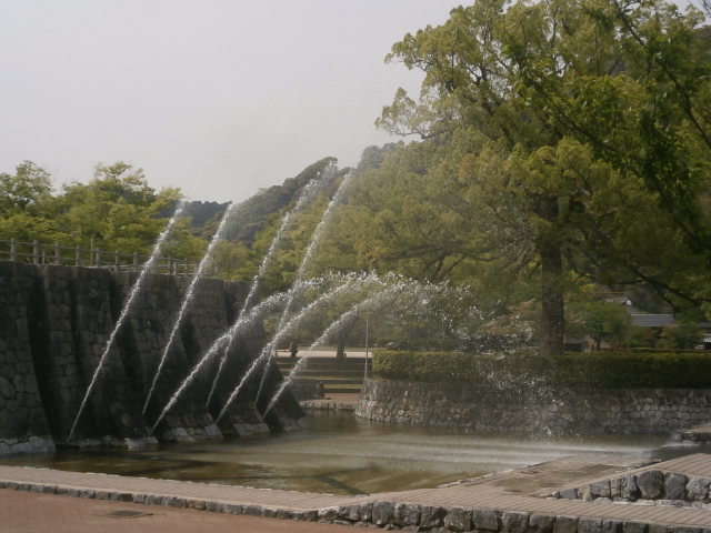 それが吉香公園 (きっこうこうえん)です。石垣から噴出す噴水が見事なところや、堀で鯉や亀と戯れたり、また歴史を感じに残存する江戸期の建築物を見るのもよし。