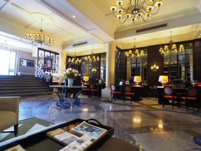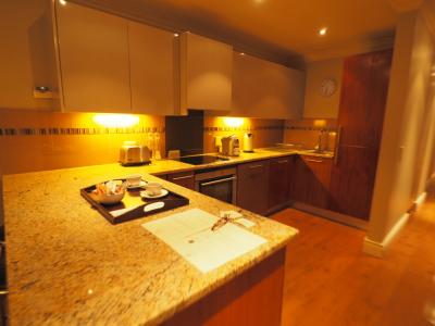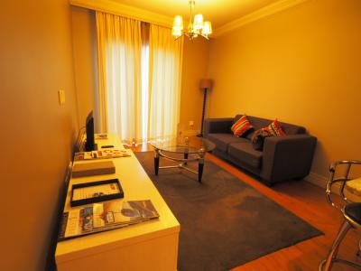 重厚な内装、素敵な雰囲気のホテルです。部屋は寝室、バスルーム、リビングと縦列していて使い勝手はあまりよくありませんでしたが、キッチンもついていて簡単なお料理もできるようになっています。