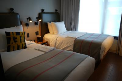 ホテル全体も部屋もシンプルな内装で、日本のちょっとおしゃれなビジネスホテルという感じ。
