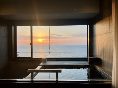 温泉つきの部屋だったので、温泉に入りながら夕暮れの白浜を一望できました。
