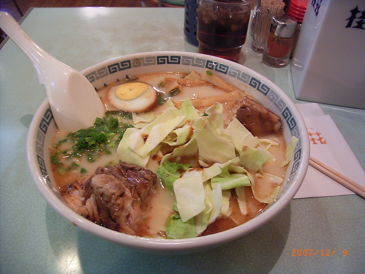 今度の本店シリーズは、熊本の桂花。場所は、繁華街の下通りから、西に入る路地の突き当たりに見えます。生キャベツが乗っているあのラーメンです。渋谷の支店で過去何回か食べてから、何年か経っており、比べるのは難しいですが、なんとなく”本店”の感動がありました。臭みが少なく、にんにくも入っておらず、熊本ラーメンにしてはかなりあっさりではないかと思います。
