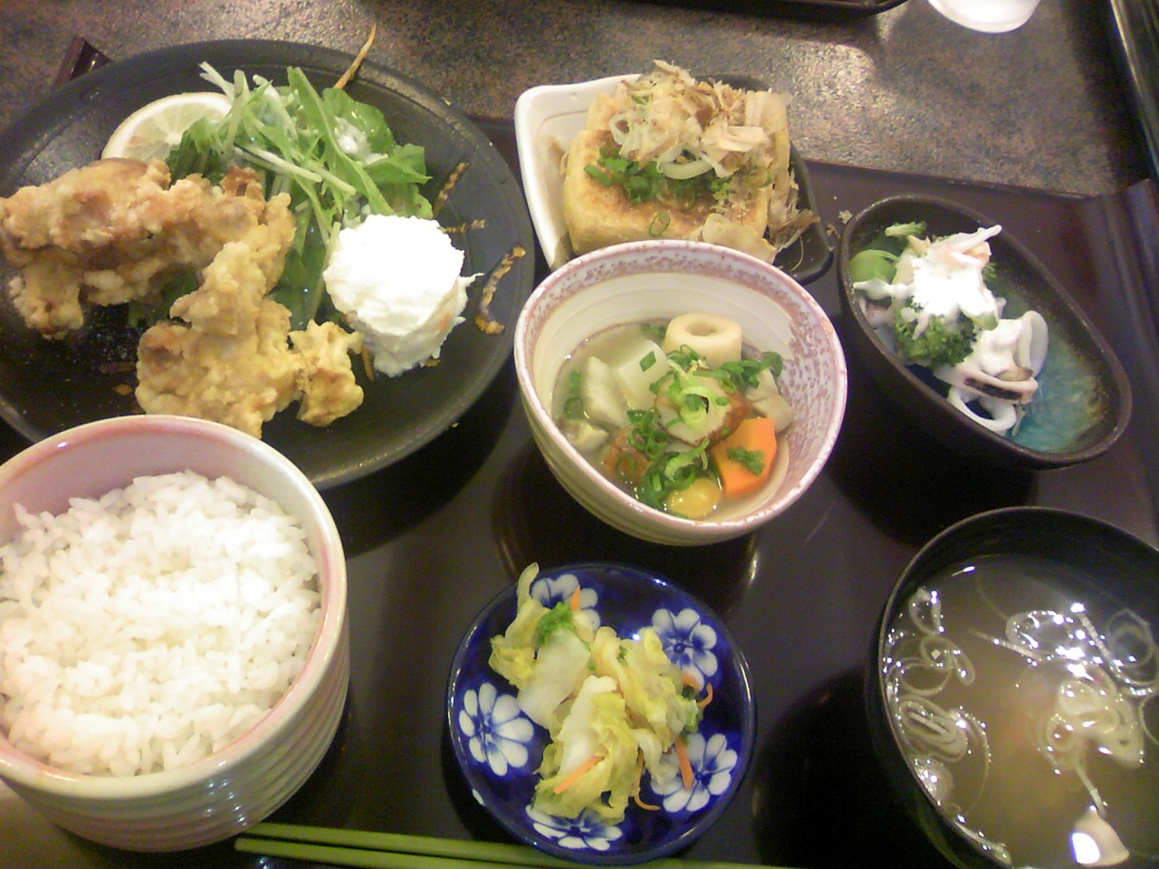 金曜日の昼前、長岡駅前でお昼を食べようとぶらりと入ったのが、「定食居酒屋つかさ」。初めて長岡に行ったので、その名も「長岡田舎定食」800円を注文。写真の通りかなりのボリューム。厚揚げと思いきや、ふわふわした厚い油揚げが新鮮でした。この当たりでは普通なのでしょうか?
