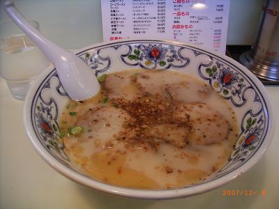 すみれ(札幌)、一風堂(福岡)に引き続き、熊本市のこむらさき(本店)に行ってみました。繁華街の上通りの北のはずれにあります。土曜日の昼過ぎで客は数人。メニューには、馬刺しとか、納豆ラーメン、チーズ入り・・・などとなにやら変わったメニューも・・・汗)選んだのは、無難そうなチャーシューメンでしたが、なんだか近所の何でもありの安いラーメン屋のとんこつと同じ味が...。ちょっと..いや、かなり、期待はずれでした。でも日曜日の昼に前を通りかかると、満席(30人くらい?)でした。人気は高いようです。