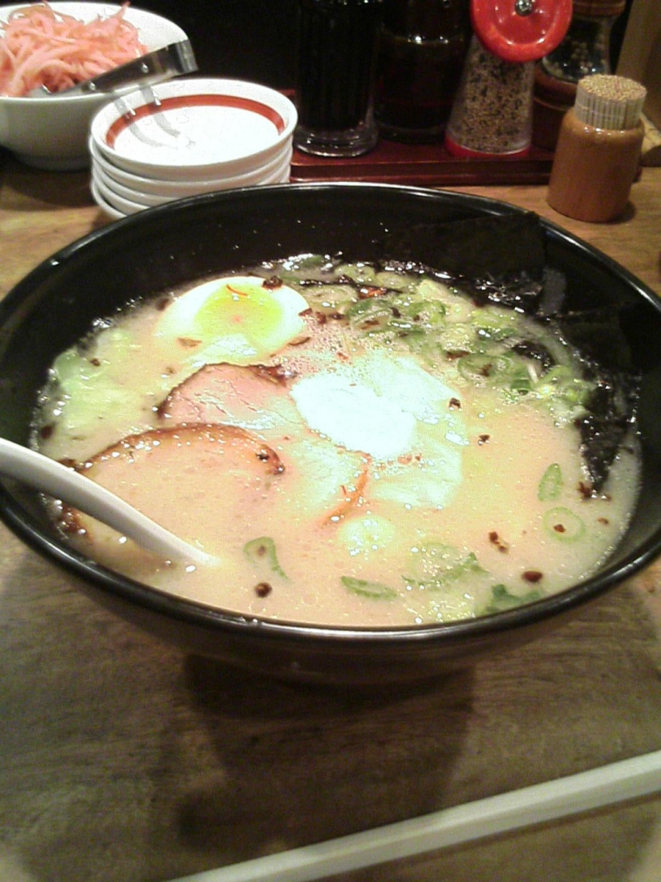 今年は、札幌の「すみれ本店」 http://4travel.jp/traveler/kackey/album/10104598/ に引き続き、福岡の「一風堂本店」にいきました。食したのは、本店限定メニューの「重ね味」(写真)でしたが。自分にはちょっと...なんか中途半端な個性でした。おいしいんですけど、赤丸新味の方が好きです。もうひとつの限定「しょうゆ」にしておけばよかったかな。