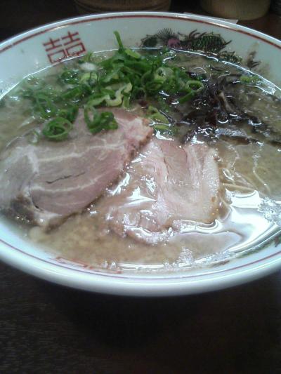 キャナルのラーメンスタジアムで、今回は、40周年を迎える「だるま」の二代目が、約20年ぶりに”封印をとき”初代の味を復活させた!との触れ込みに惹かれ、その名も「初代だるま」に入ってみました。土曜のAM11:00の開店前には、各店の前すべてに行列ができてました。私はなんと、はずかしながら一番乗り!でした。で、肝心のラーメンですが、初めての店だったので、基本の「ラーメン」にしました。味の方は・・・”一番乗り”がよくなかったのか(?)透明な油の浮いたとんこつラーメンでしたが、味が薄く、脂くささが目立ち、パンチもなく...といった具合でした。きっと、スープが落ち着き、客も落ち着く、午後の時間帯のほうがおいしいのではないかと思います。