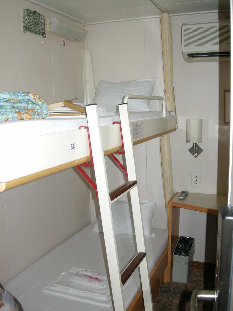 個室は一番下のクラスのスタンダードでしたので狭かったですが(2段ベッド)TVもあり、BSが6チャンネルほど映りました。