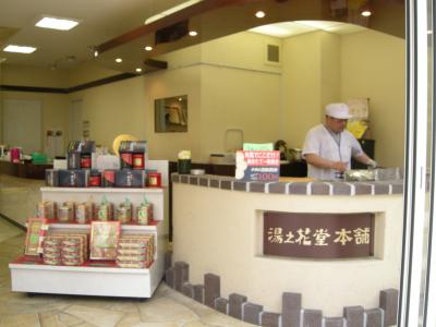 金の湯のほど近く、湯之花堂本舗さんで炭酸煎餅を買いました。