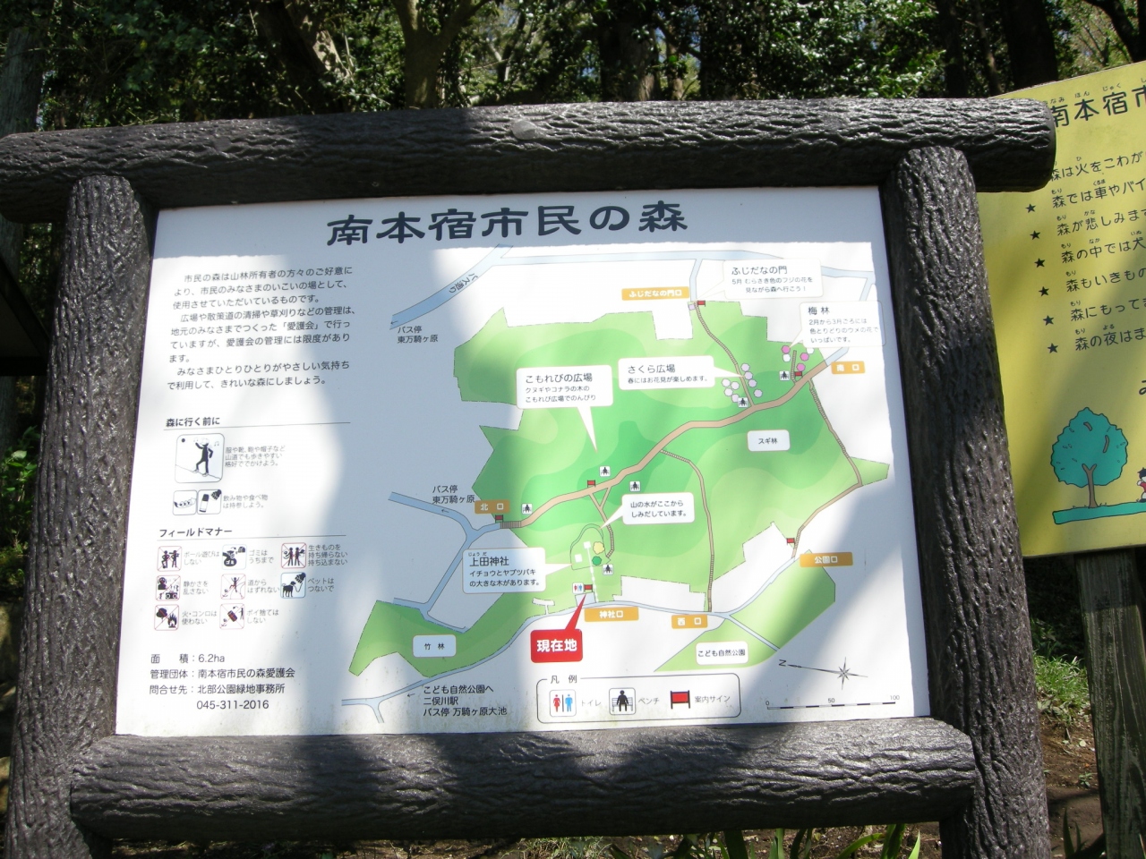 大池公園からみどりの広場をはさんだ向かいの小山が南本宿市民の森です。