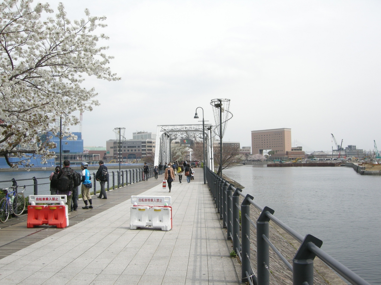 汽車道は普段は普通の人出なのですが春、桜の季節は両側に桜並木が植栽されていることもあって中々の人出になります。