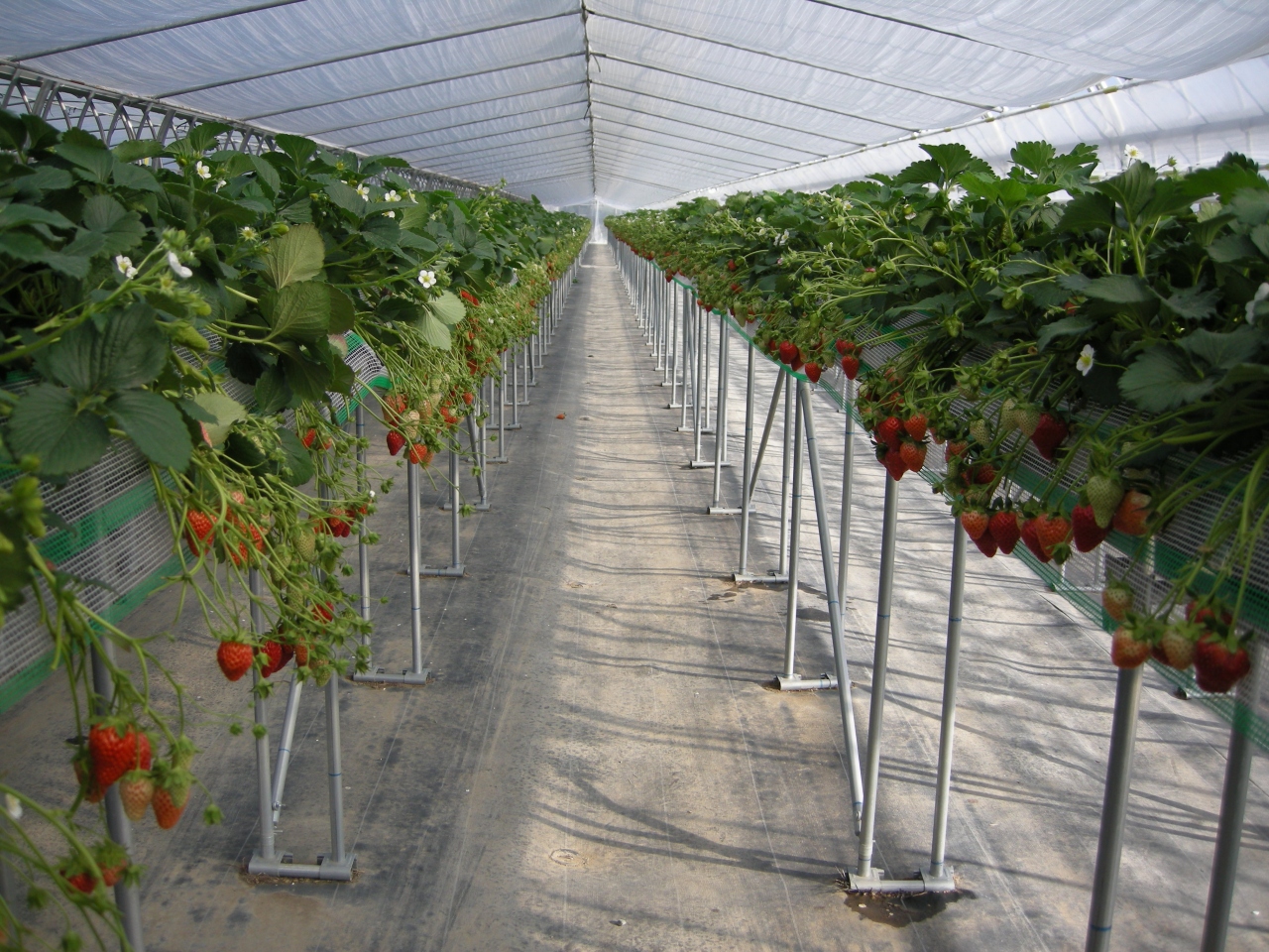 でも裏手すぐのところにポピーの温室と更に奥に苺の温室があり、苺は水耕栽培の高床式で