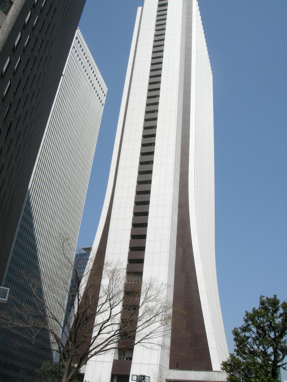 新宿副都心のビル群の中でも割と見分けがつきやすい特徴的な形をしています。