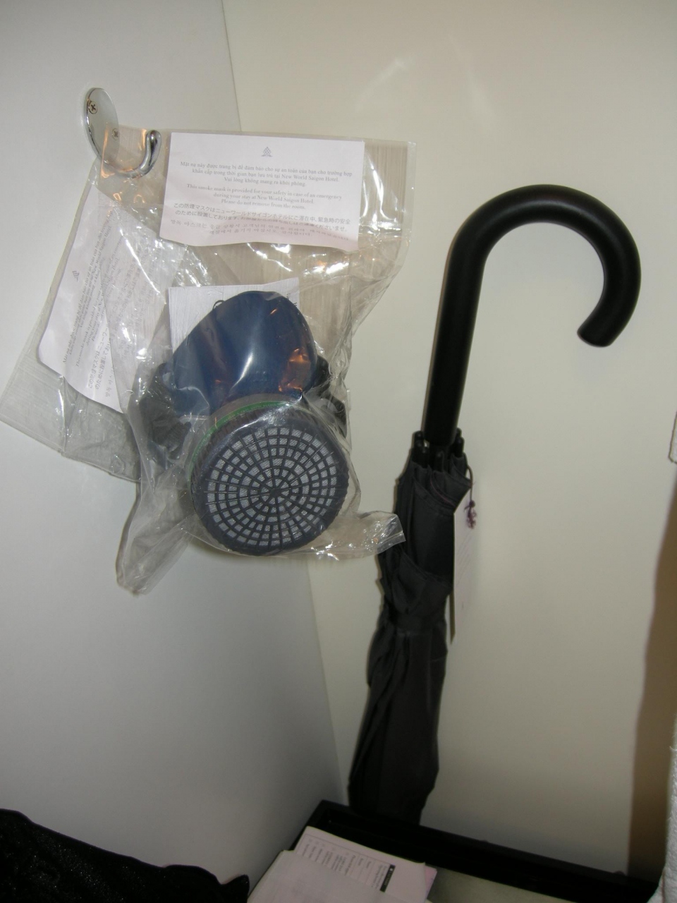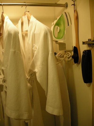 アメニティも整っていて、ドライヤーはもちろんアイロンとアイロン台やガウン、そしてびっくりしたのが防塵マスクが備え付けでした^^