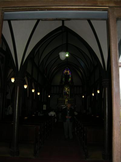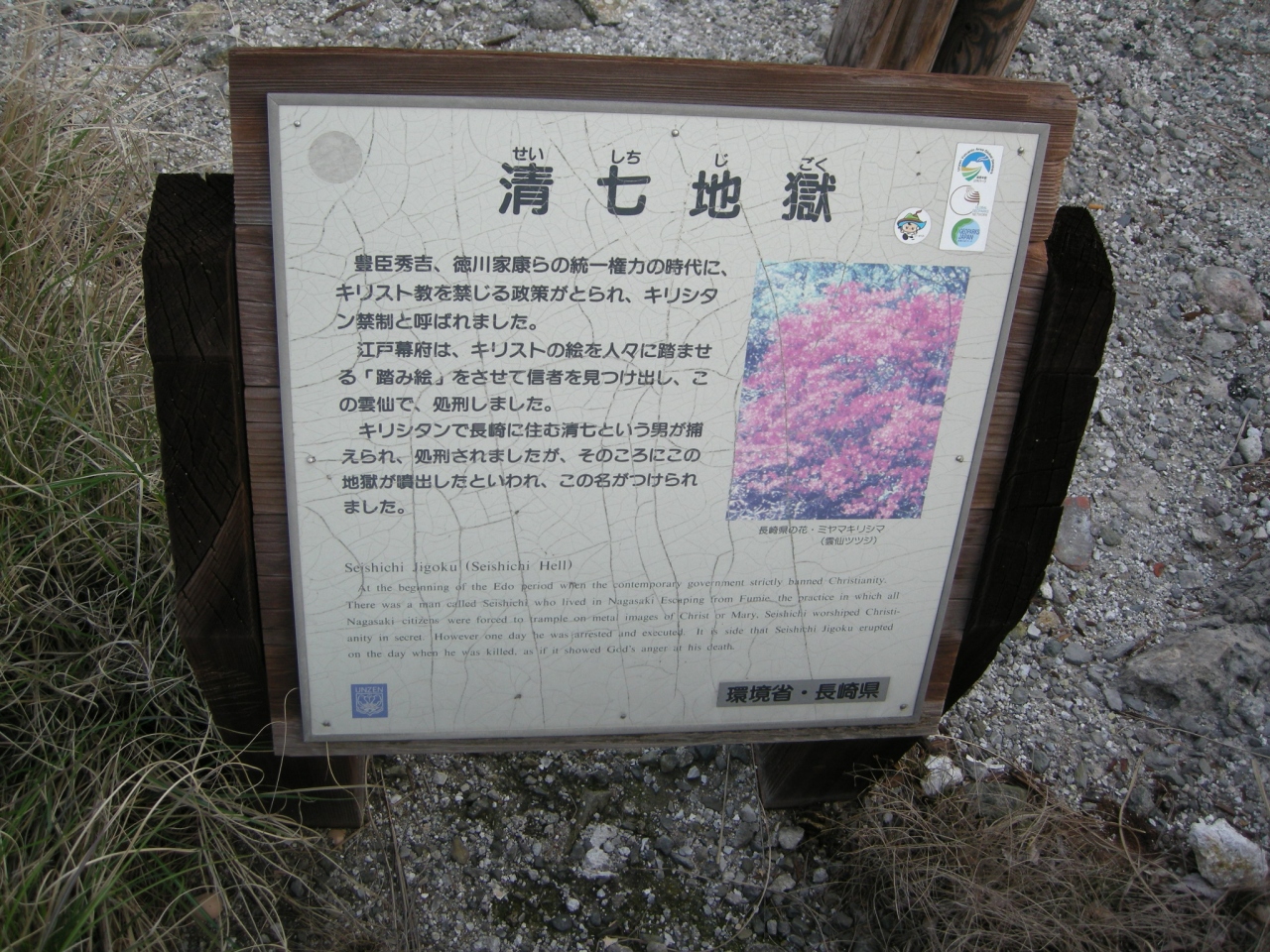 雲仙から長崎に向かう道沿いの崖の上にぽつんとあり、ツアーで行ったのですが観光バス御用達のようで次々きていました。