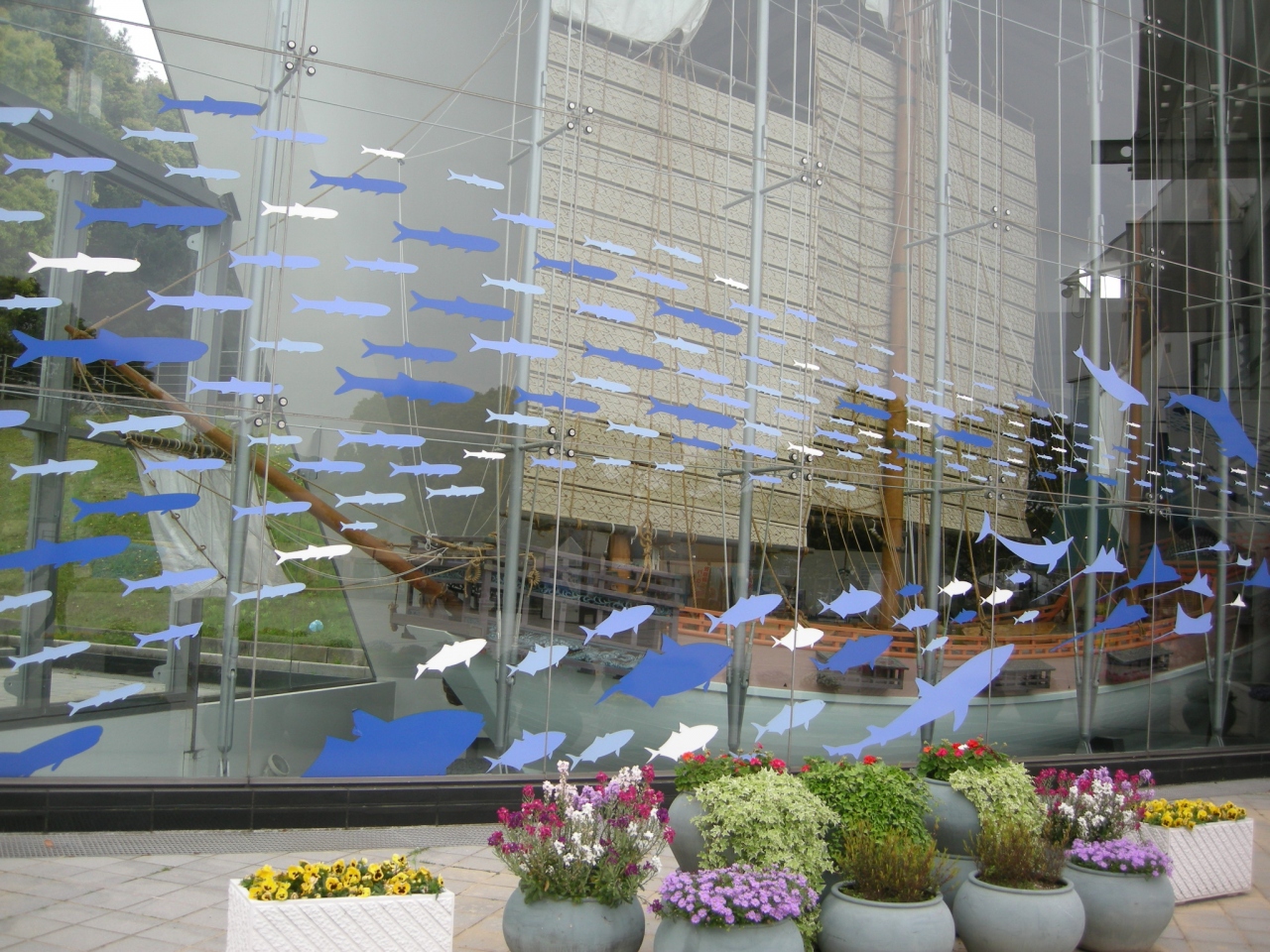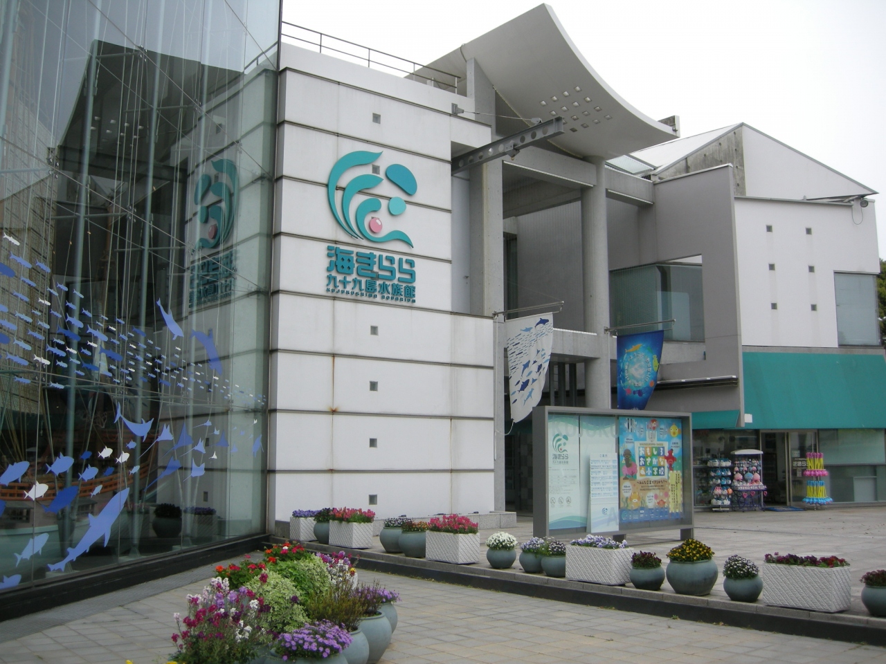 正面左のガラスの帆掛け船が目印ですね。ちょっと目を引きました。九十九島の魚や地元に密着した展示がメインで、展望フロアからは九十九島の島並みがいるかプールごしに見えました。- 旅行時期