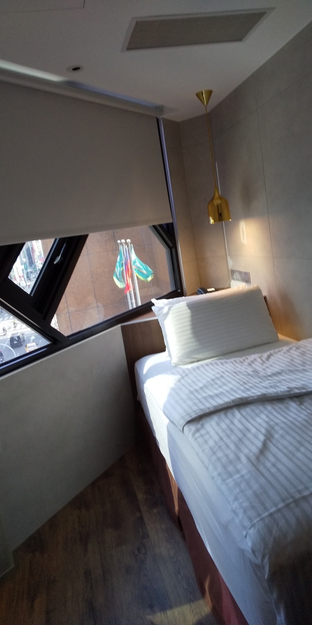 今回台北駅近くで1人旅向きでキレイなホテルを・・・こちらのホテルを選びました! 1人旅向き・キレイで今どきのホテルかな~ スタンダードシングルに宿泊 狭い空間に上手く工夫して作られた部屋 フローリングでシャワーとトイレは独立型、シャワーは水圧・温度とも問題なし!窓も大きく明るく一部が開くようになってます(窓の開閉はわが家の重要ポイント) 部屋は狭いのでスーツケースを開けると、その狭さがちょっと感じるかも? 部屋・水回りは綺麗ですが、部屋の匂いがちょっと気になりました。