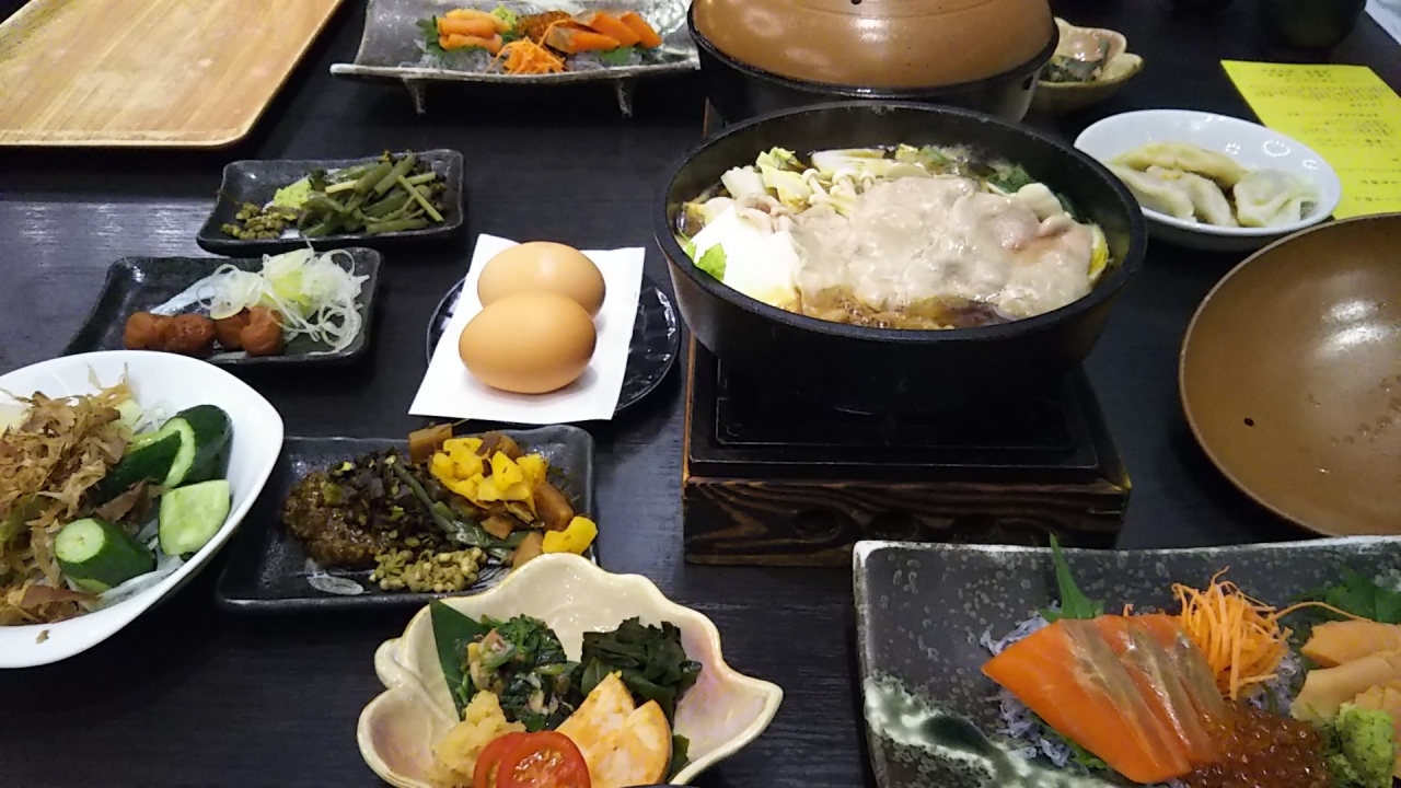 - 朝食はTHE朝食でおいしいです。夕食は今風ではないけど、ただ、山なので海の物の刺身はいらないな