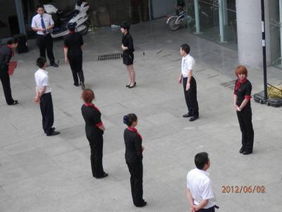 高級感がある店内と制服で揃えた店員。12時をまわって出向いたら、態度行動訓練をしていた。