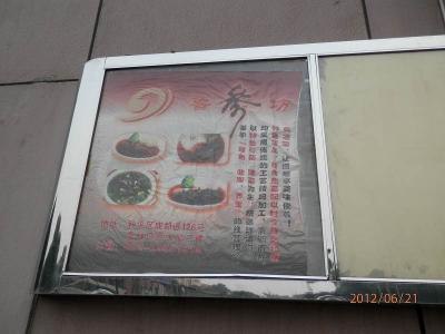 レストランに向けて大理道から歩いていたら目にとまる。フリー誌の広告では地下鉄1号線下瓦房駅まえから移転して6月20日から営業するとあった。きょうはその前日なのに、もう今からでもオーケイみたいだった。店の裏は工事の最中。