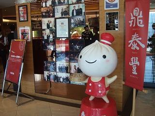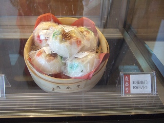 地元のお客でごった返して騒々しい。坐っていても落ち着きが悪い。ショーケースにはおみやげ用の品物が飾られている。贈答の季節なのかマスコットが置いてある。美味しいショーロンポーだけじゃなく、麺類を頼んでみたが、口に合わないようだ。
