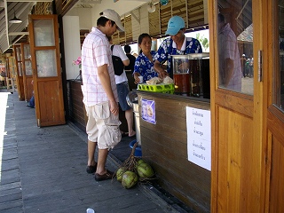 入場料が要らない。売り物も特別価格というものじゃなく一般的な価格。有難いテーマパーク。大型バスが何台も路上駐車している。駐車場には乗用車もすごい。ボートの売り人から麺類やヤシの実ジュースを購入。