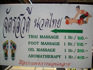 マッサージの店が数箇所。炎天下を避けてエアコンと扇風機にあたりながらマッサージで過ごした。- 旅行時期