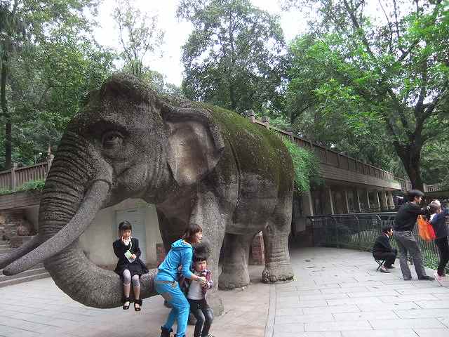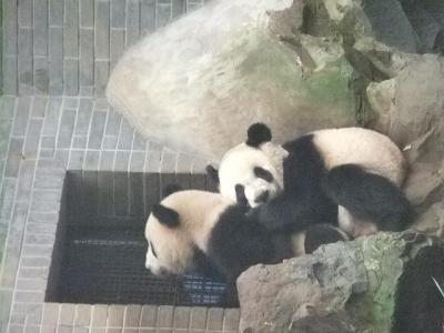 パンダはいくらでも、好きなだけ見ていてもいい。2頭。エサをやる時間が分かればもっといい。開園は7時からと聞いた。ホテルの食事が7時半からだというので出発を8時にしたけど。すでにパンダは動かず。たまにごろごろ。飼育員の動きが見えるからか、鉄の門の前で固まっている。部屋に戻りたいのか。開園すぐならエサをやる場面に出くわせるかどうか。